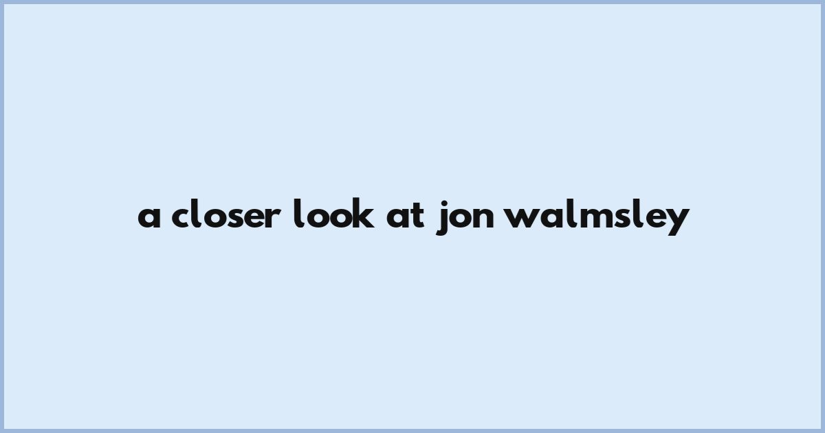 A Closer Look At Jon Walmsley