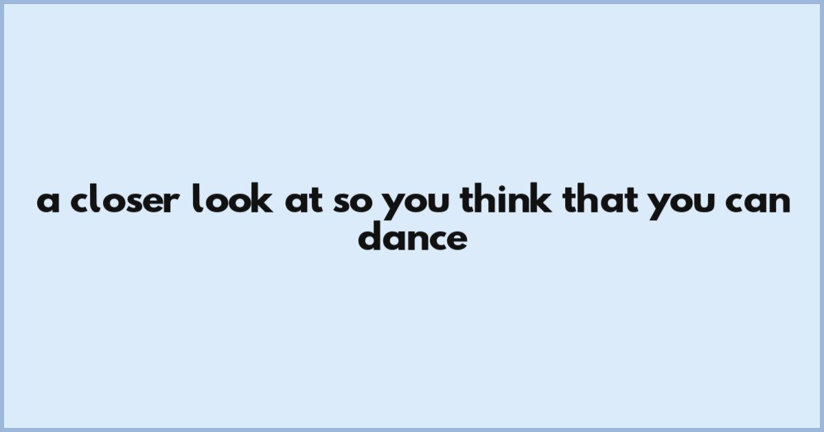 A Closer Look At So You Think That You Can Dance