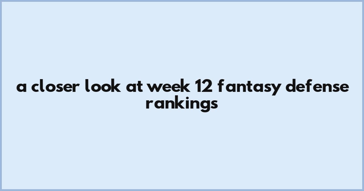 A Closer Look At Week 12 Fantasy Defense Rankings