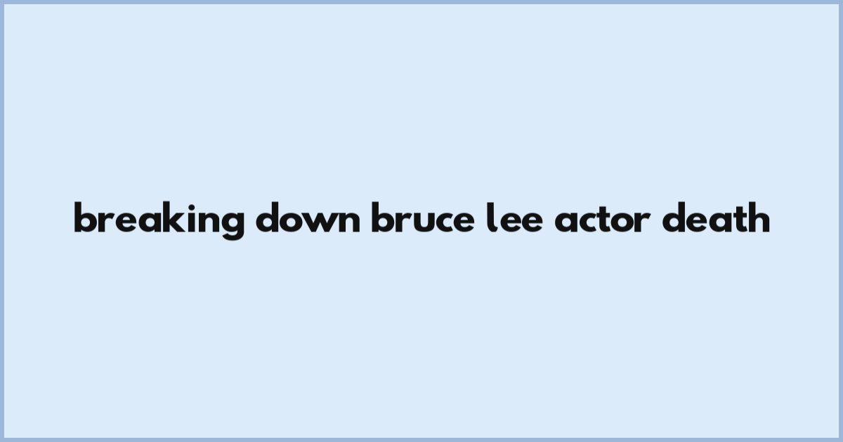 Breaking Down Bruce Lee Actor Death