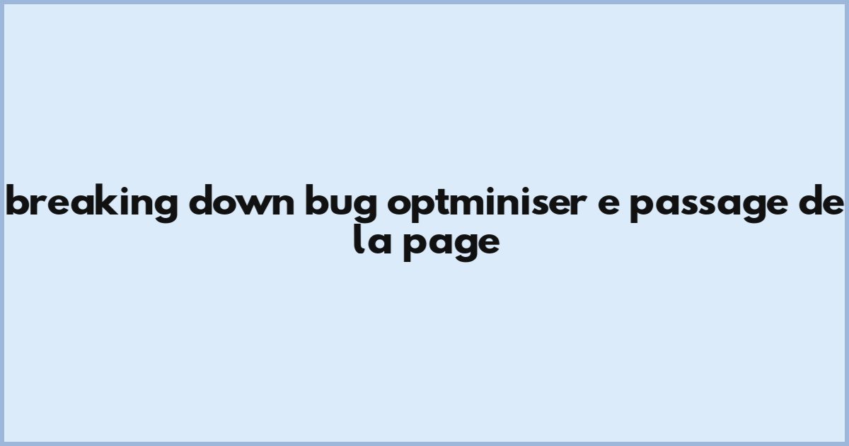 Breaking Down [Bug] Optminiser E Passage De La Page