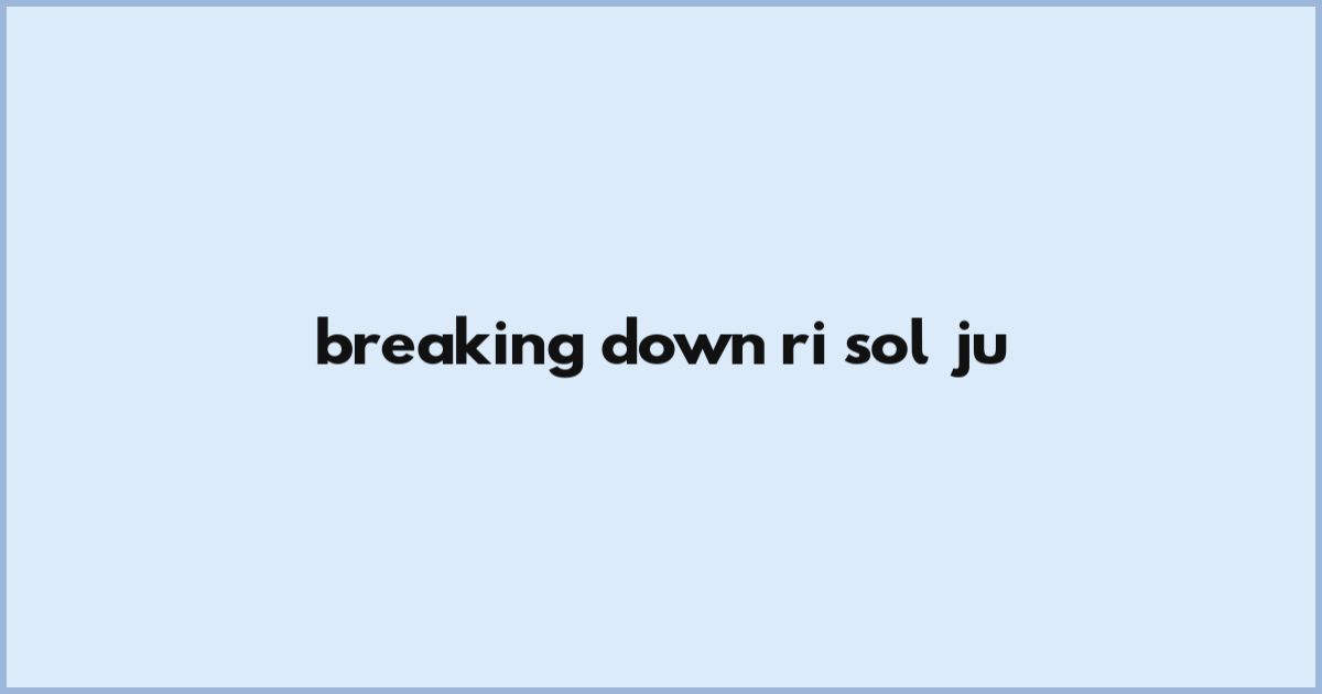 Breaking Down Ri Sol Ju
