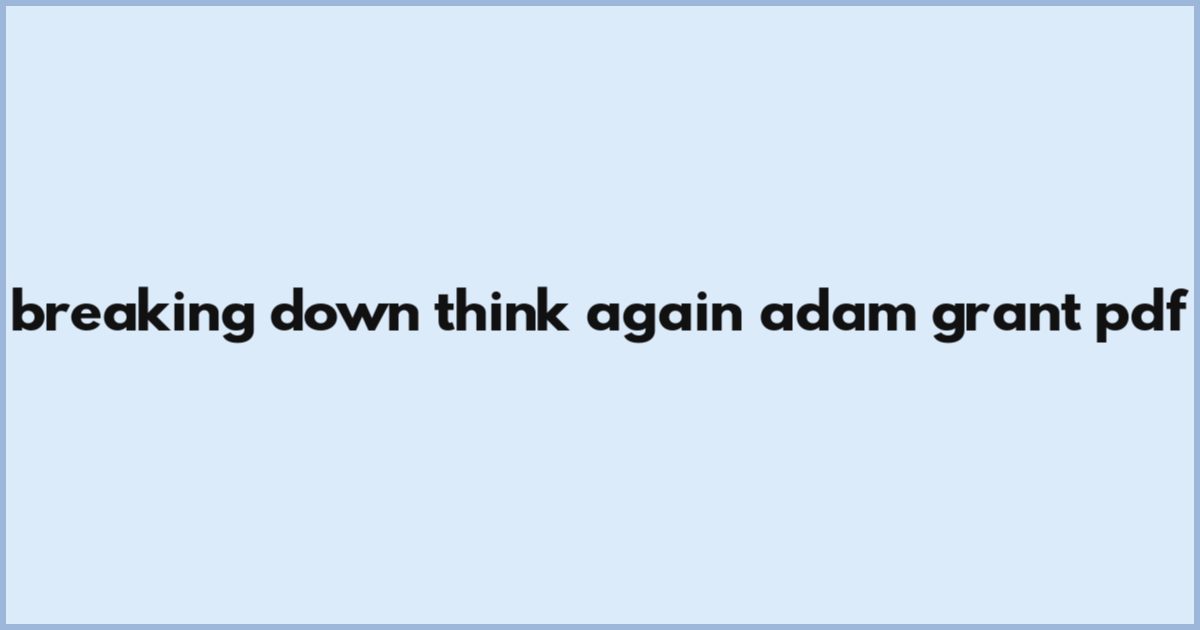 Breaking Down Think Again Adam Grant Pdf