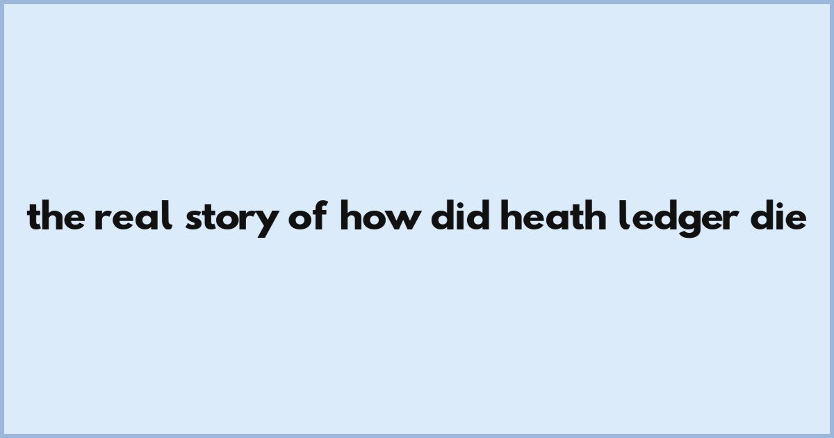 The Real Story Of How Did Heath Ledger Die