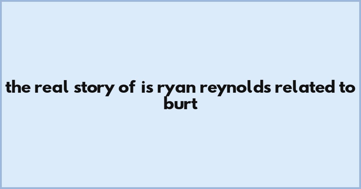 The Real Story Of Is Ryan Reynolds Related To Burt