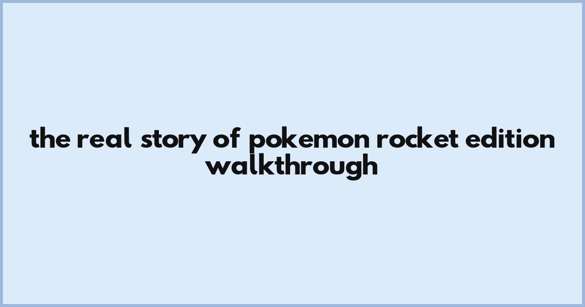 The Real Story Of Pokemon Rocket Edition Walkthrough
