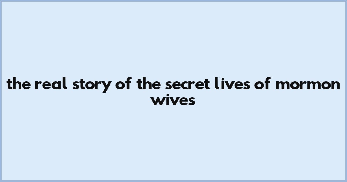 The Real Story Of The Secret Lives Of Mormon Wives