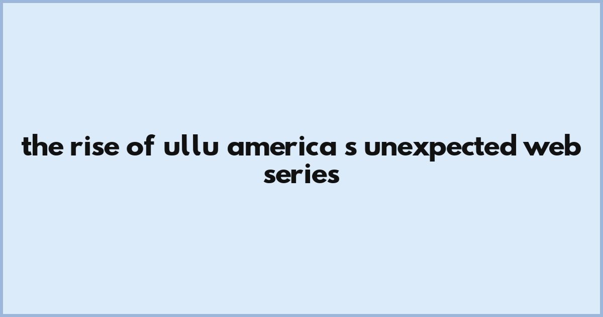 The Rise Of Ullu: America’s Unexpected Web Series
