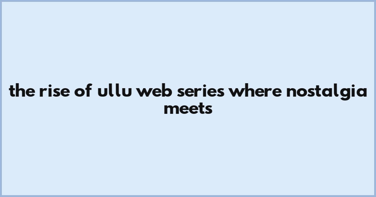 The Rise Of Ullu Web Series: Where Nostalgia Meets