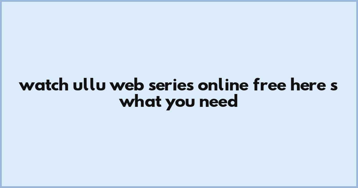 Watch Ullu Web Series Online Free—Here’s What You Need